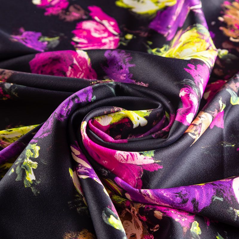 Креп-атлас 001-03112 черный принтованный в Вологде