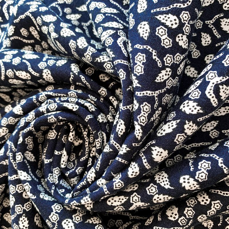 Креп К36-070 темно-синий принтованный