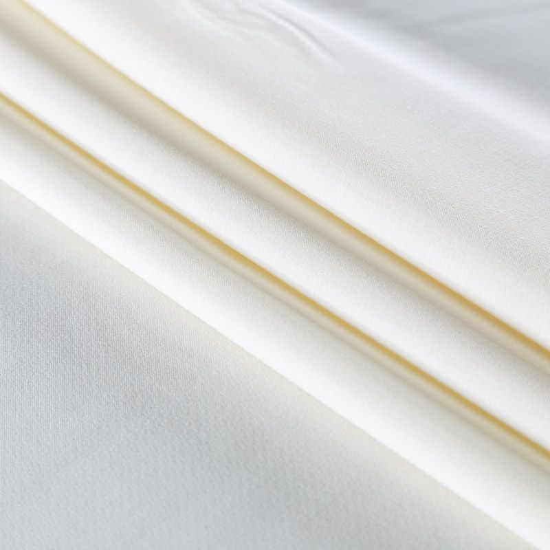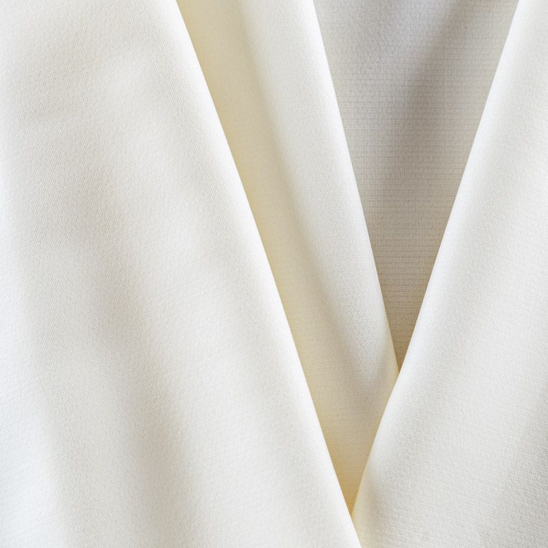 Итальянский костюмно-плательный шерстяной креп в молочном оттенке. Ткань упругая, пластичная, с добавлением эластана, хорошо держит форму, практически не мнется. Подойдет для пошива платья, жакета, юбки, свободных брюк, топа, лонгслива, комбинезона.