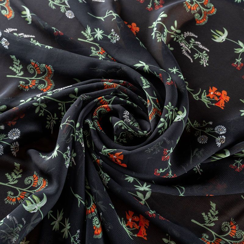 Креп-шифон 027-01276 черный принтованный в Вологде