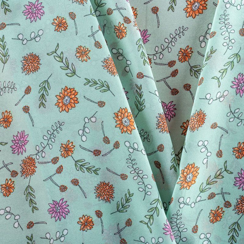 Креп-шифон 027-01285 мятно-зеленый принтованный в Вологде