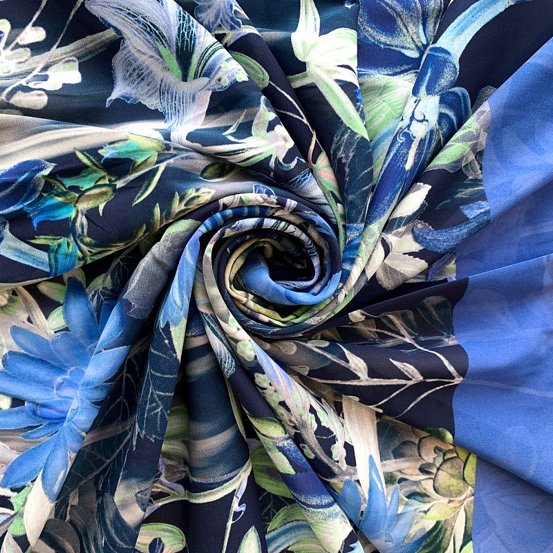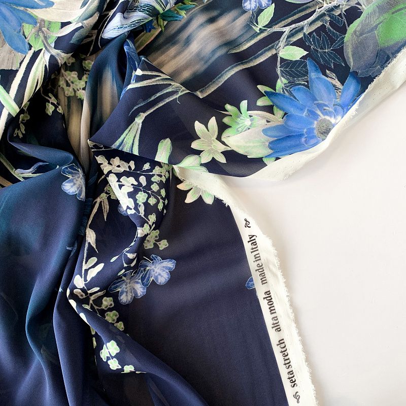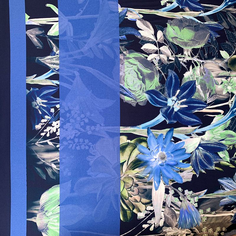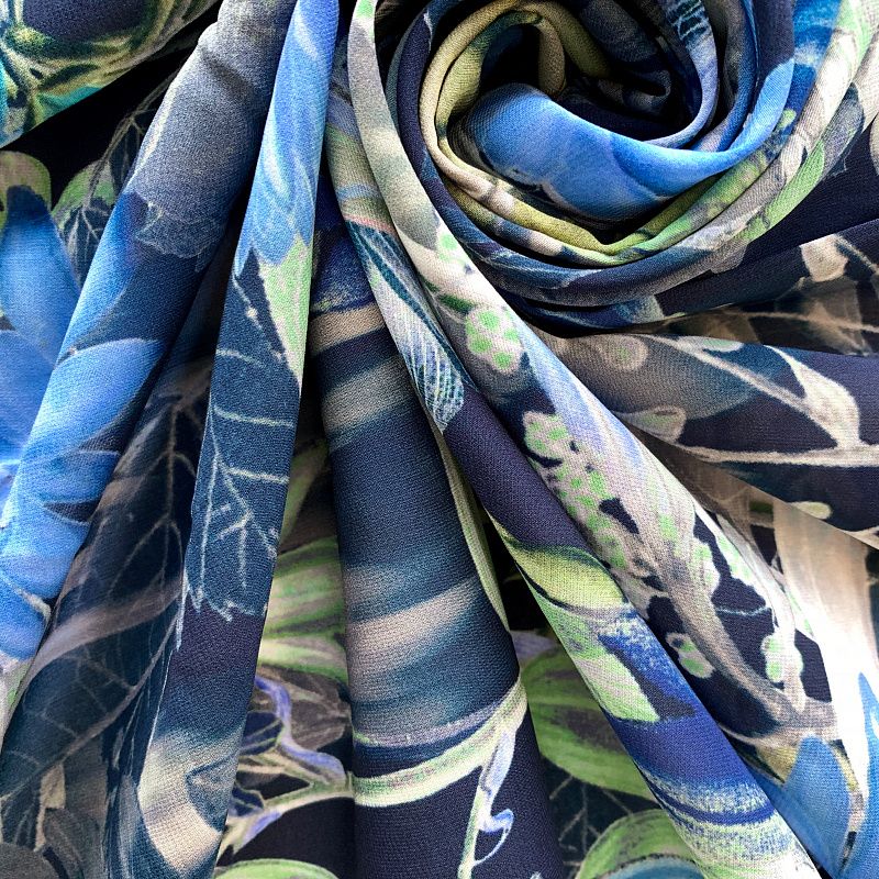 Креп-шифон натуральный К32-375 темно-синий принтованный в Вологде