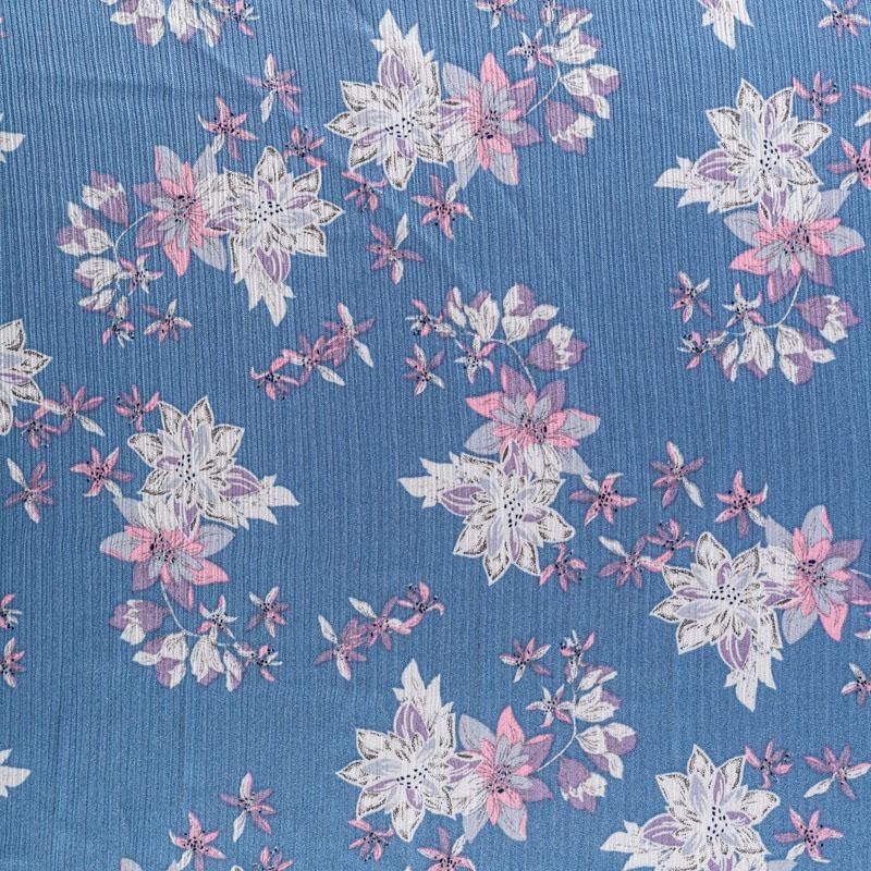 Креп-шифон жатка 027-01293 серебристо-голубой принтованный