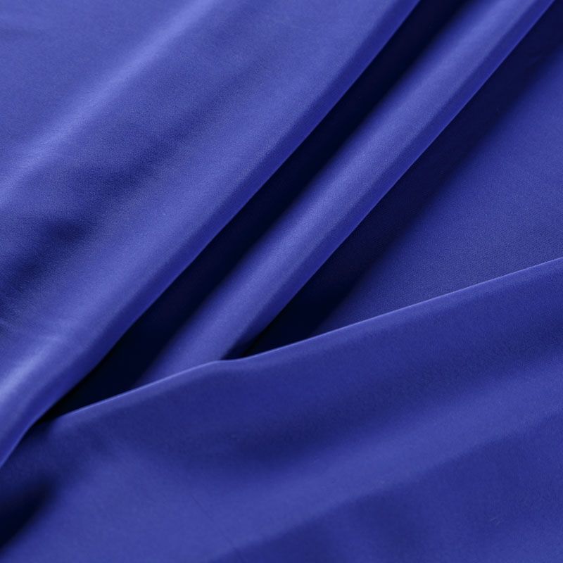 Шелковый крепдешин в синем оттенке с фиолетовым подтоном, тонкий, легкий, фактурный, приятный на ощупь, тянется за счет эластана в составе. Ткань слегка просвечивает, можно использовать подклад. Прекрасно будет смотреться в платье, юбке, тунике, рубашке или блузке.