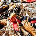 Натуральный шелковый крепдешин с матовой поверхностью, легкий, струящийся, хорошо драпируется. Оригинальный насыщенный принт выполнен в монохромной гамме в добавлением ярких цветовых акцентов. Крепдешин прекрасно подойдет для пошива летнего сарафана, платья, топа, блузки, костюма в пижамном стиле, широких брюк или юбки.