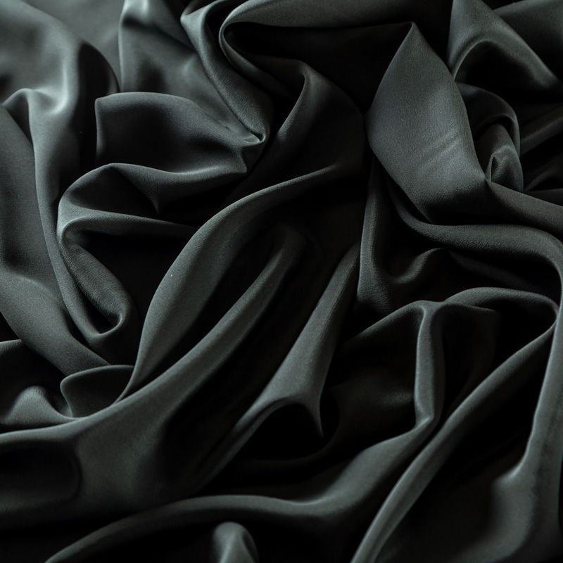 Итальянский натуральный шелковый крепдешин в темном оттенке хаки, фактурный, легкий и струящийся, слегка просвечивает, отлично драпируется. Идеально подойдет для пошива платьев и сарафанов расклешенных моделей, с воланами, летящих юбок, топов, блузки, юбки, широких брюк, костюма в пижамном стиле.