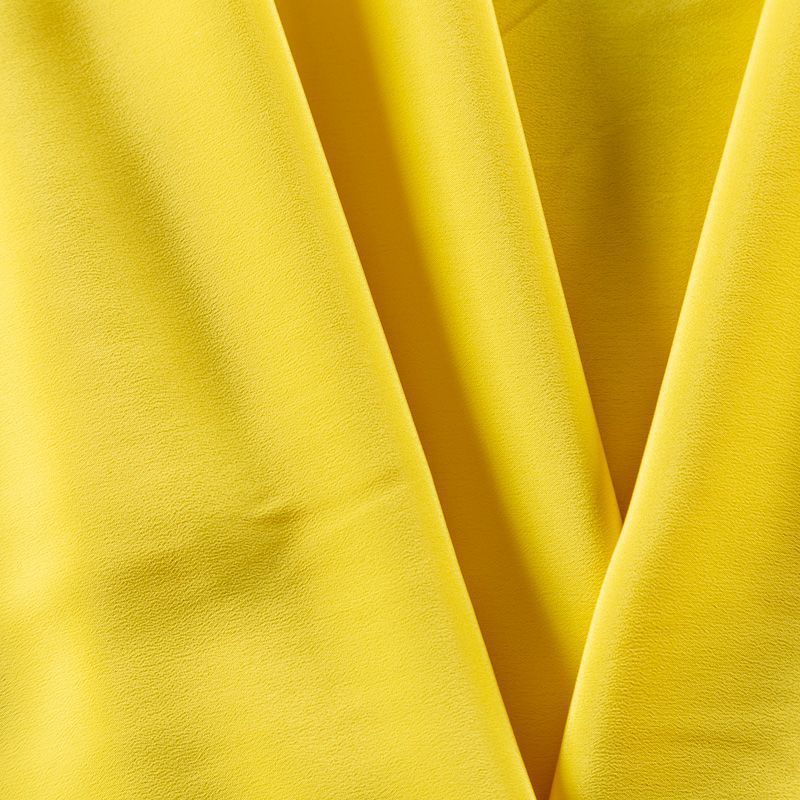 Итальянский натуральный шелковый крепдешин в желтом оттенке, фактурный, легкий и струящийся, слегка просвечивает, отлично драпируется. Идеально подойдет для пошива платьев и сарафанов расклешенных моделей, с воланами, летящих юбок, топов, блузки, юбки, широких брюк, костюма в пижамном стиле.