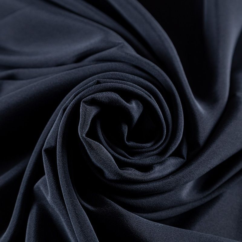 Итальянский натуральный шелковый крепдешин в черном оттенке, фактурный, легкий и струящийся, слегка просвечивает, отлично драпируется, тянется за счет эластана в составе. Идеально подойдет для пошива платьев и сарафанов расклешенных моделей, с воланами, летящих юбок, топов, блузки, юбки, широких брюк, костюма в пижамном стиле.