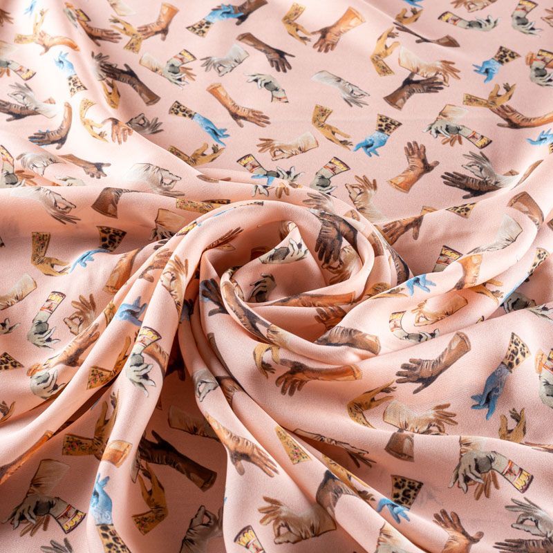 Крепдешин натуральный К08-358 пудровый принтованный в Вологде