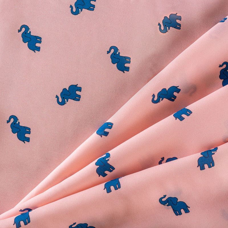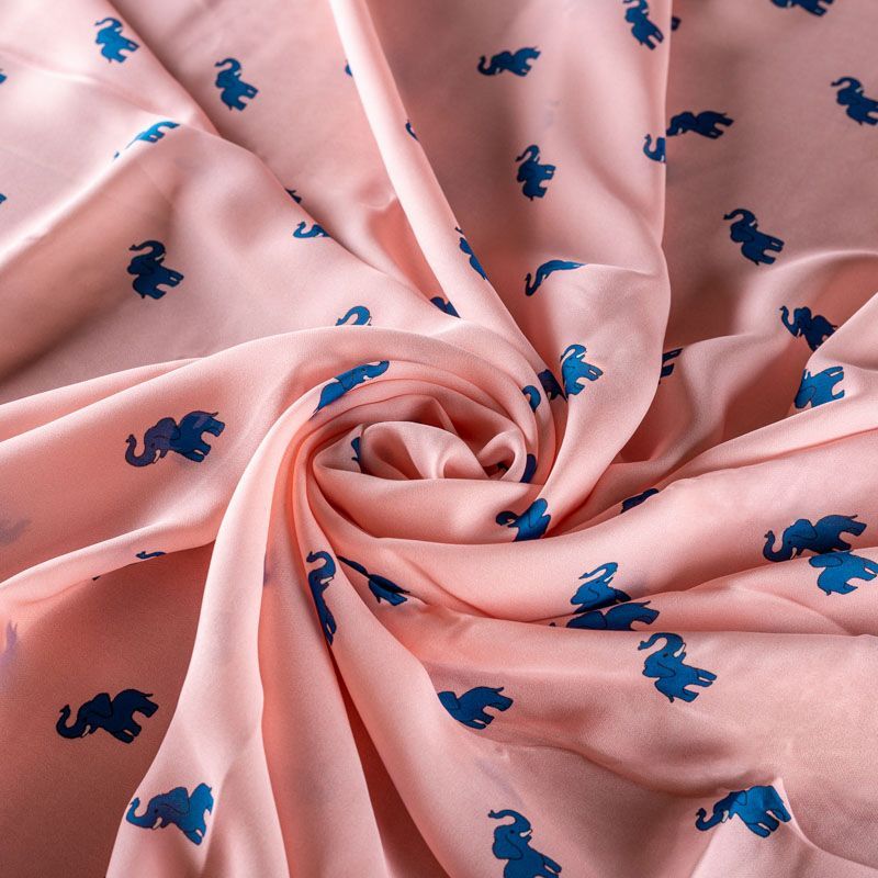 Крепдешин натуральный К14-056 персиково-розовый принтованный в Вологде