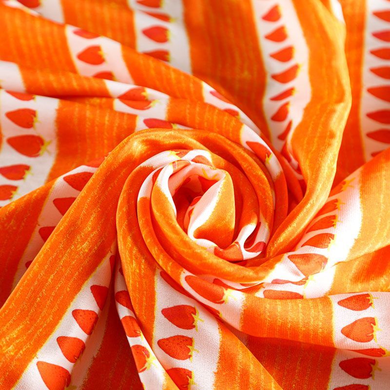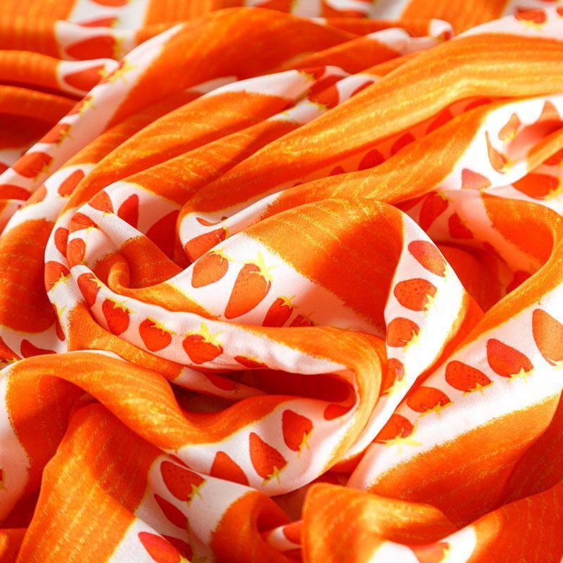 Крепдешин натуральный К15-061 апельсиновый принтованный в Вологде