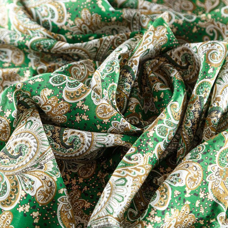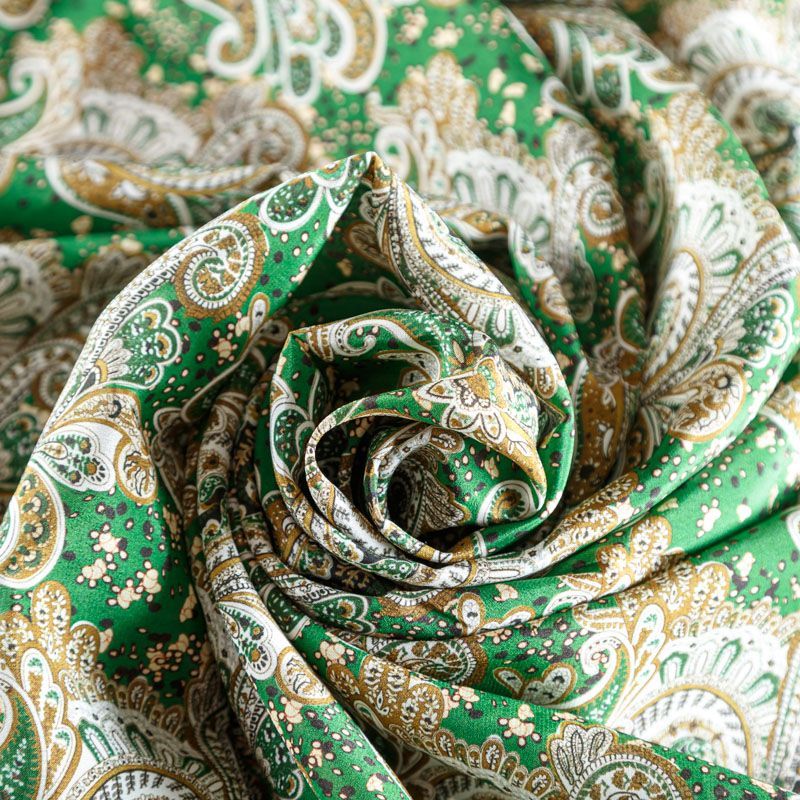 Крепдешин натуральный К24-023 зеленый принтованный в Вологде