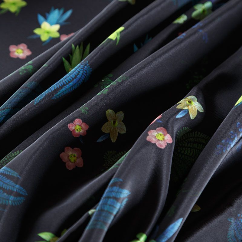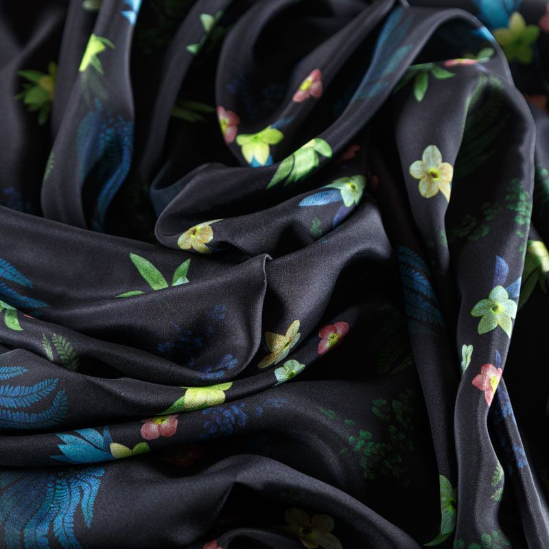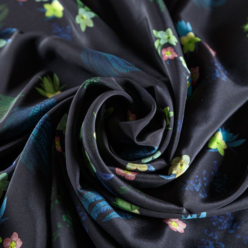 Крепдешин натуральный К24-032 черный принтованный в Вологде