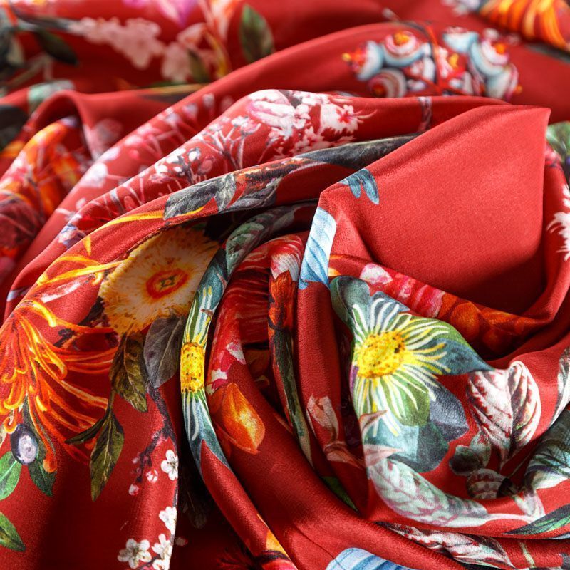 Крепдешин натуральный К24-040 красный принтованный в Вологде