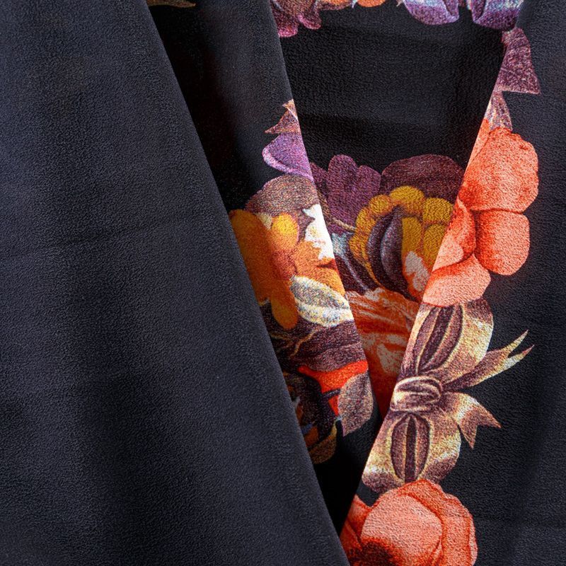 Крепдешин натуральный К29-785 черный принтованный в Вологде