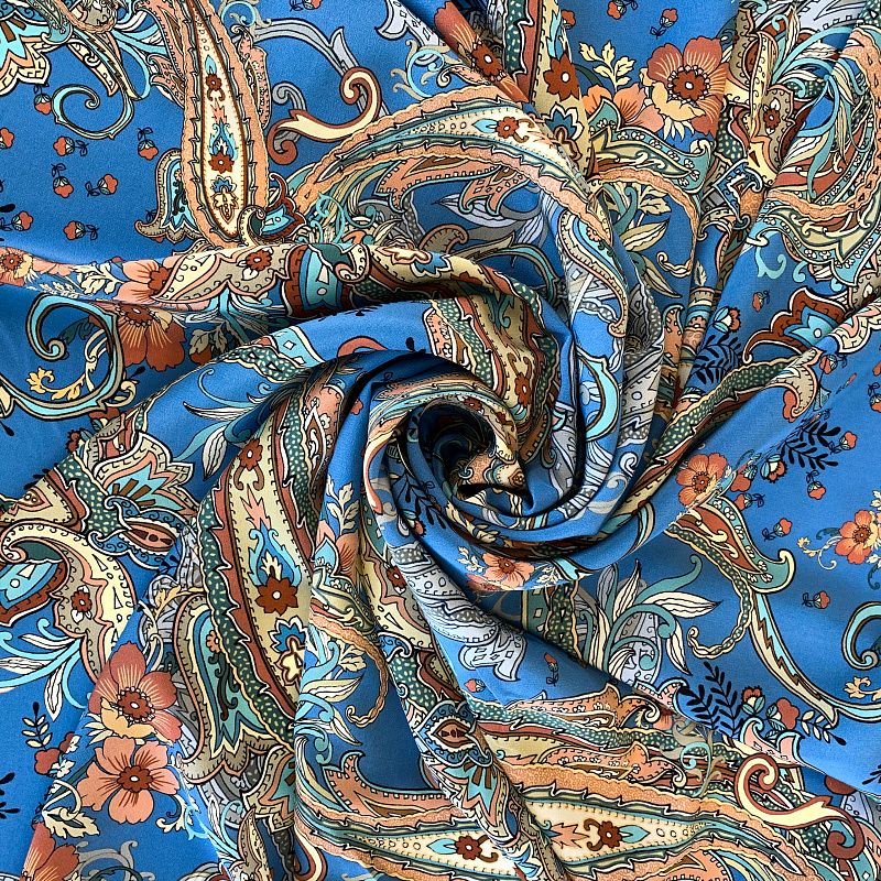 Крепдешин натуральный К32-250 голубой принтованный в Вологде