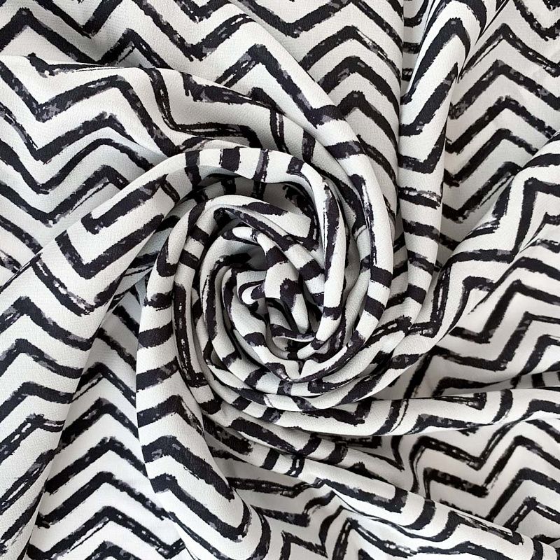 Крепдешин натуральный К32-378 молочный принтованный в Вологде