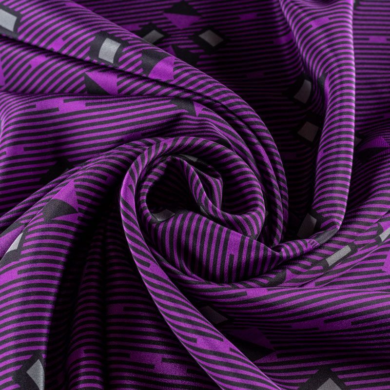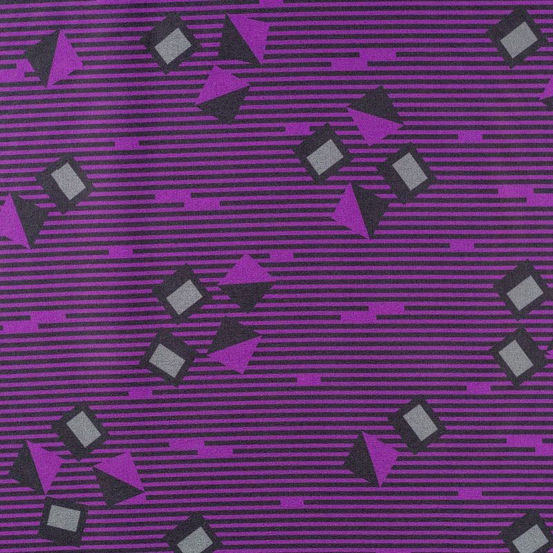 Тонкий и легкий крепдешин с абстрактным принтом в фиолетовых и черных тонах. Ткань мягкая, нежная, струящаяся, красиво драпируется, приятная к телу, поверхность матовая, с благородным блеском. Прекрасно подойдет для пошива блузы, платья, юбки, легких свободных брюк или комбинезона.