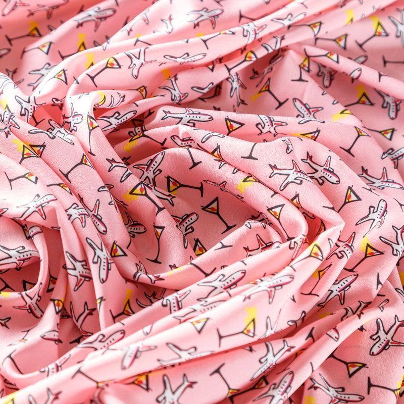 Крепдешин синтетический 029-08062 розовый принтованный в Вологде