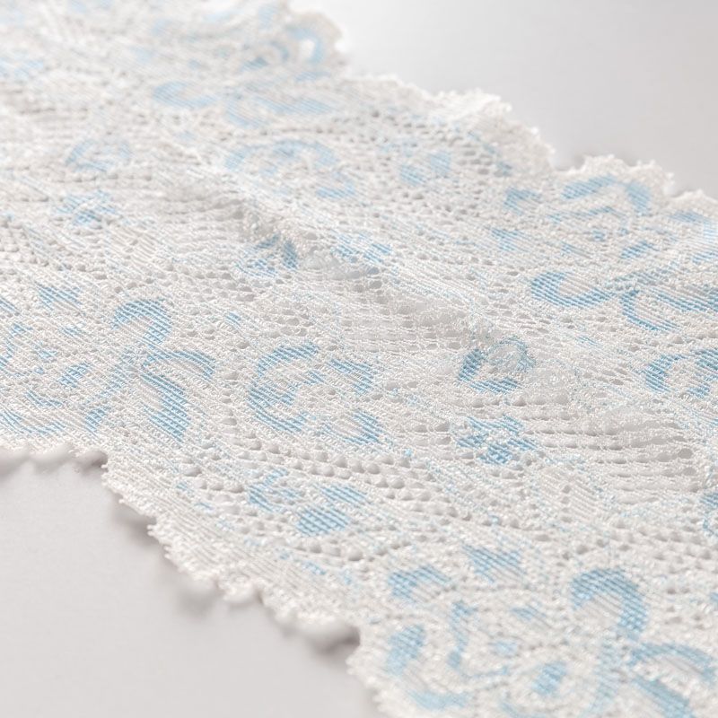 Эластичное кружево сочетает в себе мягкость, прочность и красоту, благодаря своей упругости оно долго не теряет первоначальную форму. Используется для пошива нижнего белья, а так же применяется как отделочный декор в одежде.