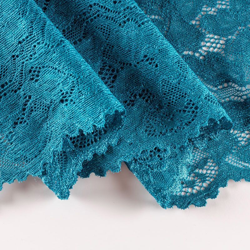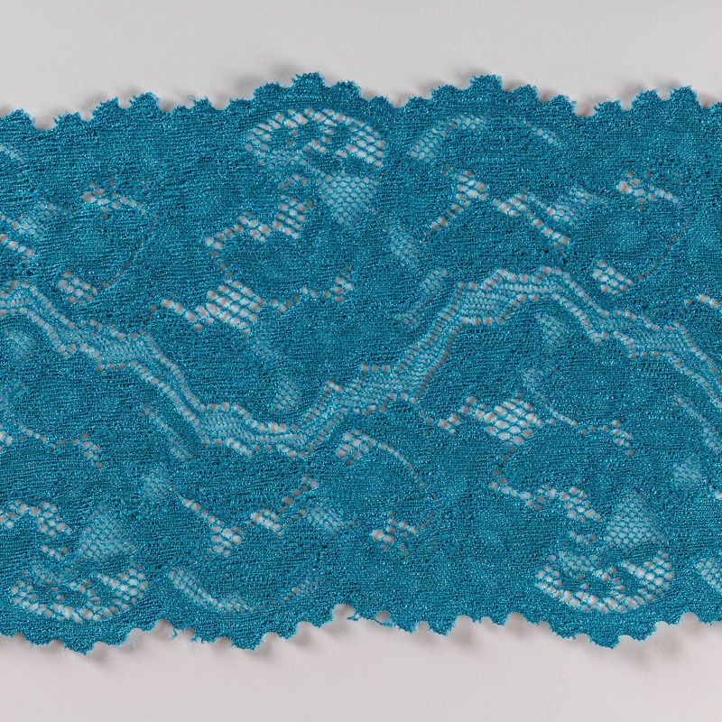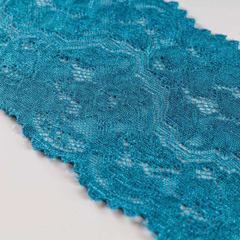 Эластичное кружево сочетает в себе мягкость, прочность и красоту, благодаря своей упругости оно долго не теряет первоначальную форму. Используется для пошива нижнего белья, а так же применяется как отделочный декор в одежде.