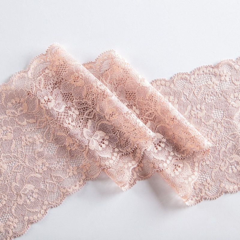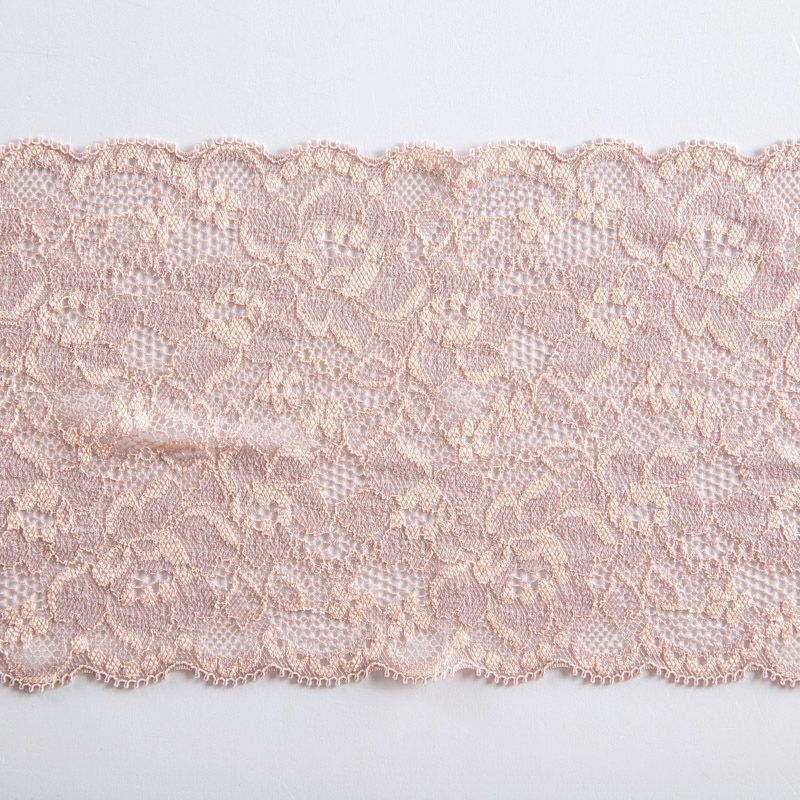 Эластичное кружево сочетает в себе мягкость, прочность и красоту, благодаря своей упругости оно долго не теряет первоначальную форму. Используется для пошива нижнего белья, а так же применяется как отделочный декор в одежде.