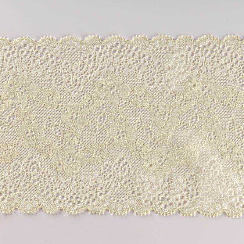 Эластичное кружево сочетает в себе мягкость, прочность и красоту, благодаря своей упругости оно долго не теряет первоначальную форму. Используется для пошива нижнего белья, а так же применяется как отделочный декор в одежде.