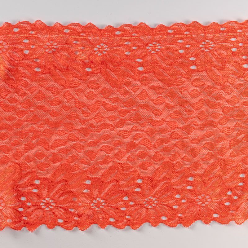 Эластичное кружево сочетает в себе мягкость, прочность и красоту, благодаря своей упругости оно долго не теряет первоначальную форму. Используется для пошива нижнего белья, а так же применяется как отделочный декор в одежде.