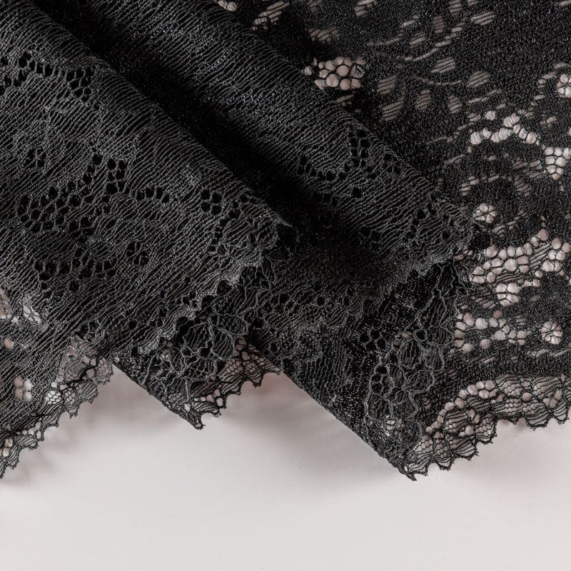 Эластичное кружево сочетает в себе мягкость, прочность и красоту, благодаря своей упругости оно долго не теряет первоначальную форму. Используется для пошива нижнего белья, а так же применяется как отделочный декор в одежде.