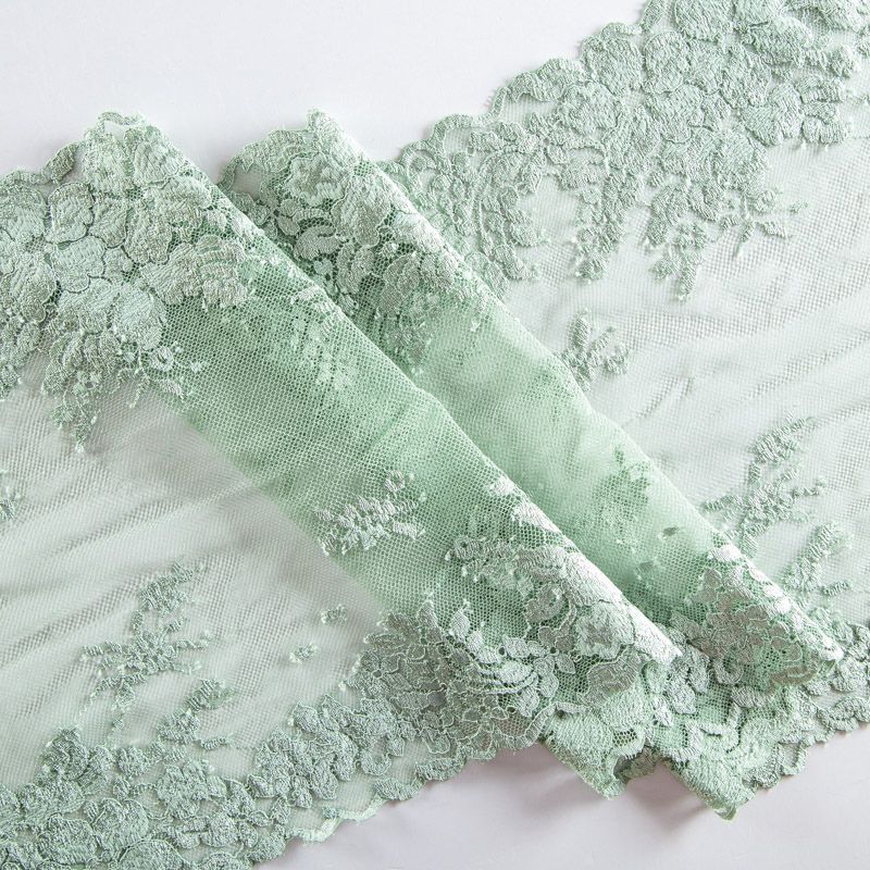 Эластичное кружево сочетает в себе мягкость, прочность и красоту, благодаря своей упругости оно долго не теряет первоначальную форму. Используется для пошива нижнего белья, а так же применяется как отделочный декор в одежде.