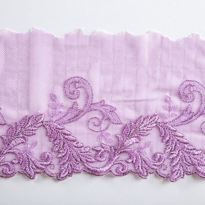 Кружево вышивка на сетке 120 мм Ф01-0007 сиреневый с люрексом