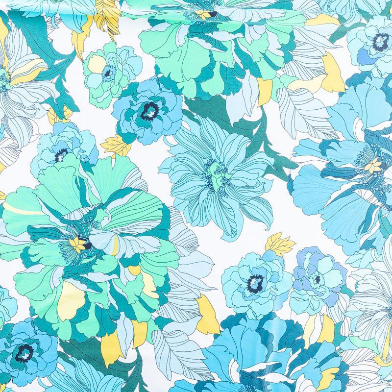 Итальянский бифлекс с ярким стилизованным цветочным принтом. Поверхность ткани матовая и гладкая. Отлично тянется, одежда из него не сковывает движения. Хорошо впитывает влагу и быстро высыхает, не вызывет аллергии и раздражения. Используется для пошива эстрадных, спортивных костюмов, купальников, боди.