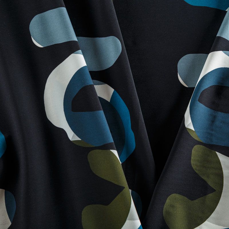 Итальяская качественная, красивая и приятная на ощупь лайкра черного цвета со стильным принтом в виде надписей. Поверхность ткани матовая и гладкая. Идеально облегает фигуру, тянется по двум направлениям, хорошо драпируется, отлично держит форму, устойчива к пилингу, долговечна и гигроскопична. Используется для пошива одежды для танцев, гимнастики, фигурного катания, для велоспорта, легкой атлетики и аэробики, фитнеса и других видов спорта, для купальников, женского белья, театральных, цирковых и эстрадных костюмов.