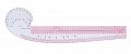 На лекале нанесена разметка: - 6, 12, 15 мм вдоль скругленной стороны, что позволяет проводить плавные линии и измерять скругленные участки; - 4, 6, 8 мм для создания ровных и длинных линий; - углы от 30° до 90° для построения угла нужного размера на выкройке. Метрическая система измерений: см и мм.