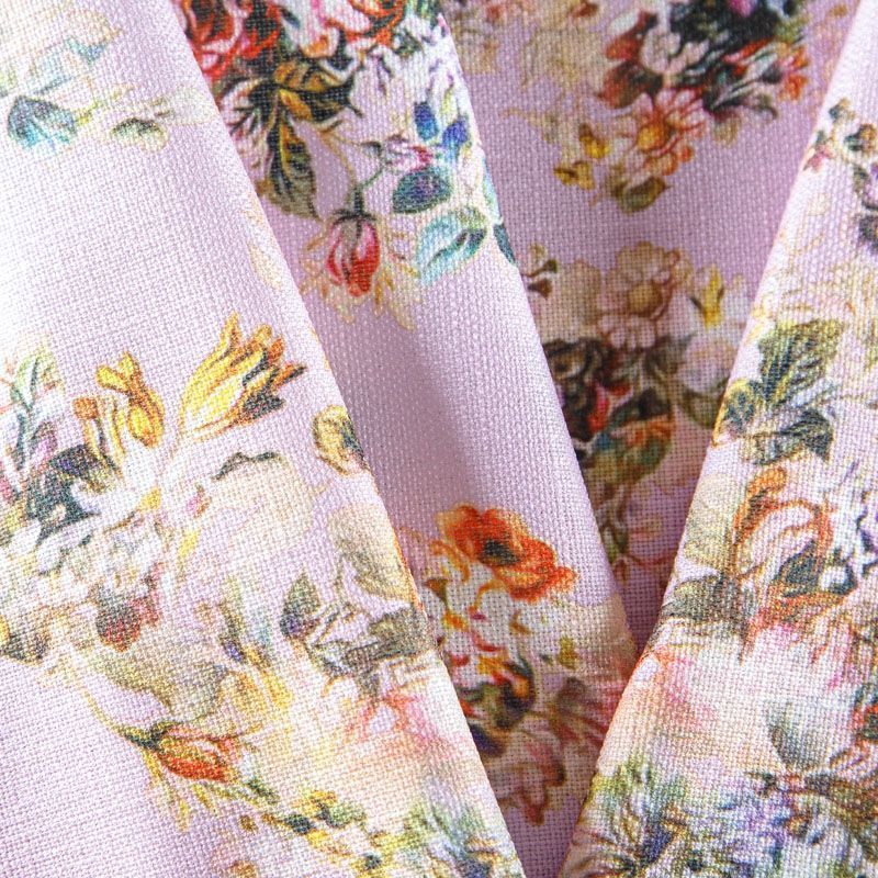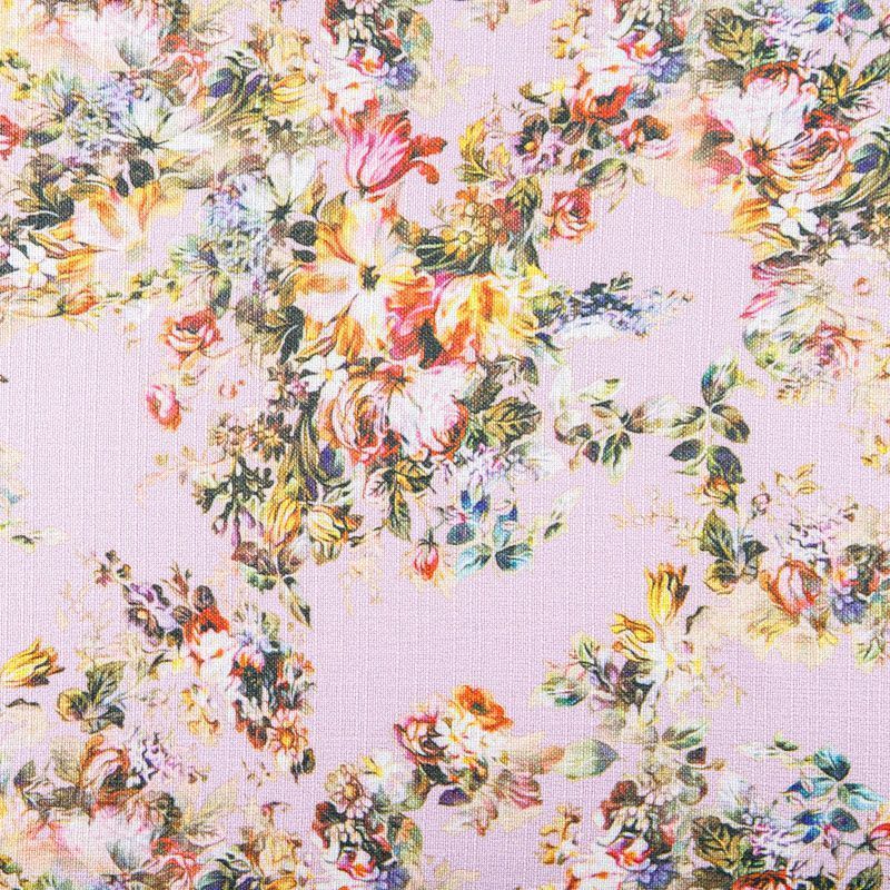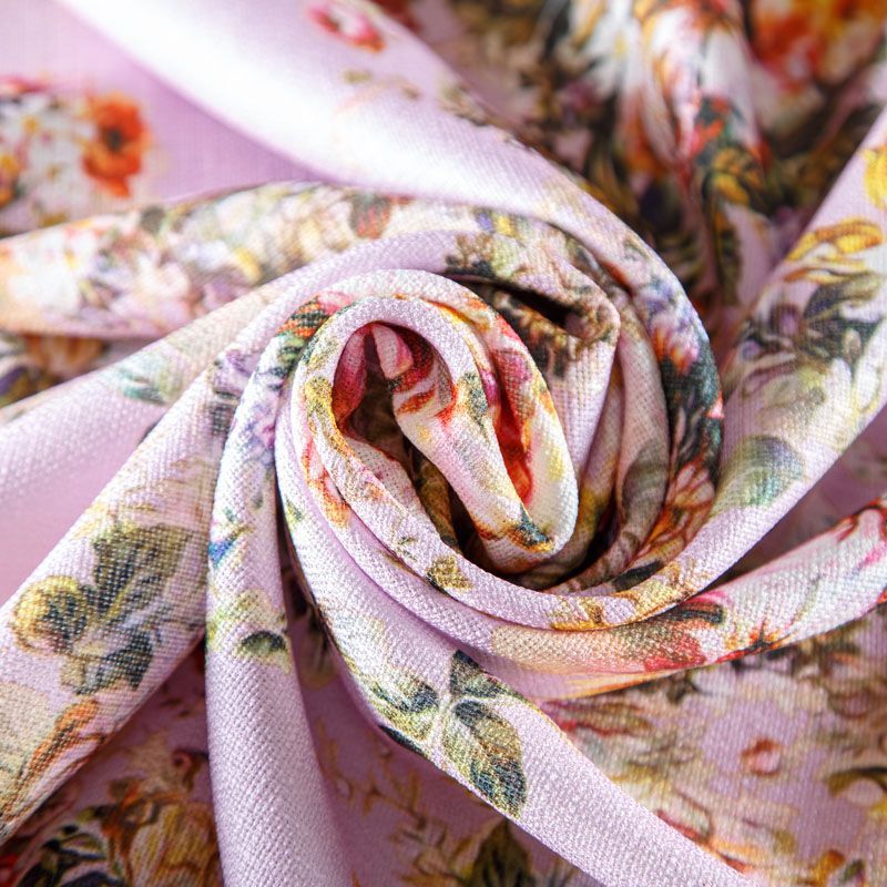 Мягкая, пластичная ткань розового оттенка с цветочным принтом, с выразительной матовой рельефной поверхностью и полотняным переплетением, хорошо драпируется, тянется. Прекрасно подойдет для пошива брюк, шорт, юбок, платьев, сарафанов, жакетов, кардиганов.