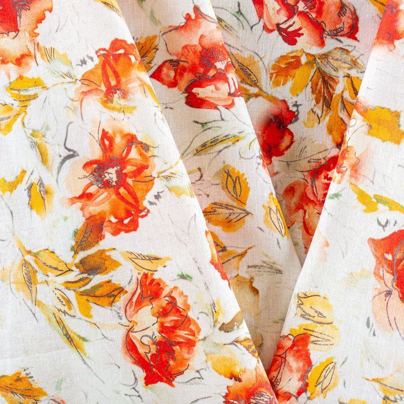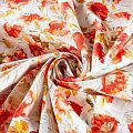 Льняная плательно-рубашечная ткань с добавлением бемерии в белом цвете с акварельными красными маками. Материал прочный, с выразительной матовой рельефной поверхностью, полотняным плетением, хорошо держит форму, мягкий на ощупь, пластичный, отлично драпируется. Прекрасно подойдет для пошива летних платьев, сарафанов, юбок, рубашек, брюк и шорт.