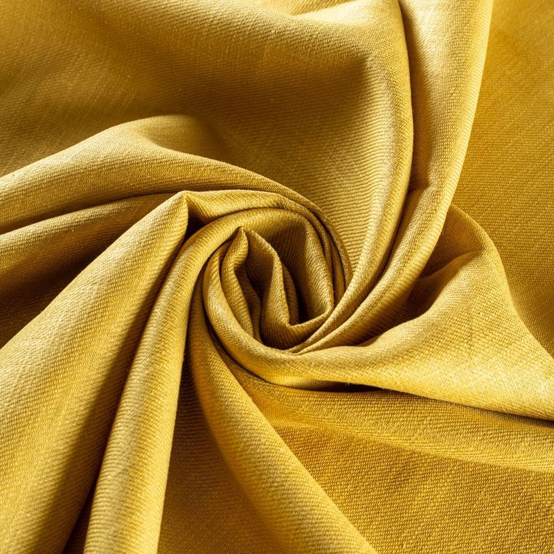 Льняная костюмно-плательная ткань красивого горчичного оттенка. Ткань прочная и плотная, с выразительной матовой рельефной поверхностью и полотняным переплетением, отлично держит форму, комфортная в изделии. Стильный вариант для летних пальто, кардиганов, платьев, сарафанов, юбок, жакетов, брюк или шорт.