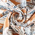 Итальянский костюмно-плательный лен с богатым принтом пейсли на коричневом фоне. Ткань прочная, имеет матовую рельефную поверхность и полотняное переплетение, отлично держит форму, пластичная, комфортная в изделии. Отлично подойдет для пошива для летних костюмов, рубашек, туник, платьев, сарафанов, юбок, жакетов, брюк или шорт.