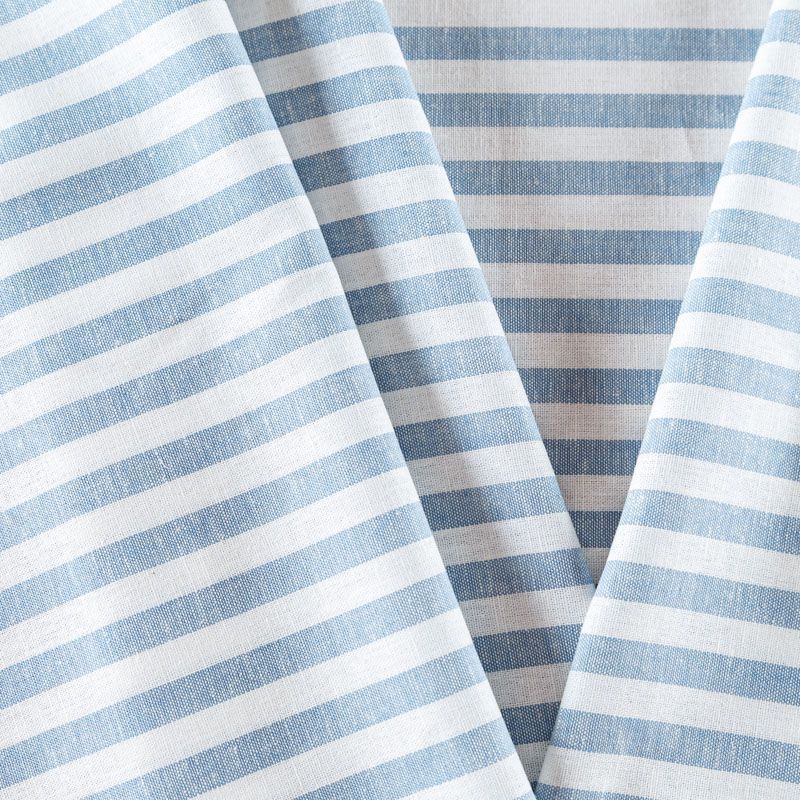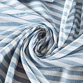 Итальянский плательно-рубашечный лен белого цвета в голубую вертикальную полоску. Ткань прочная, имееет на ощупь приятную, гладкую поверхность, а визуально - выраженный рельеф и полотняное переплетение, пластичная, хорошо драпируется, непрозрачная. Подойдет для пошива широких брюк, рубашек, туники, юбок, платьев, сарафанов, топов, комбинезонов.