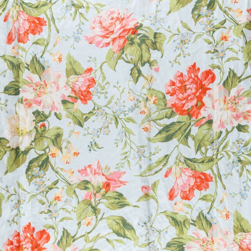 Лен натуральный К18-083 выбеленный голубой принтованный