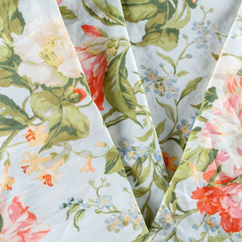 Лен натуральный К18-083 выбеленный голубой принтованный в Вологде