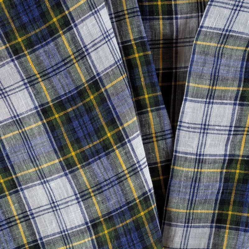 Прочный, выразительная матовая рельефная поверхность, полотняное переплетение, хорошо держит форму, жестковатый на ощупь, но комфортный в изделии. Прекрасно подойдет для пошива летних платьев, сарафанов, туники, юбки, рубашки, брюк и шорт. Льняная плательная ткань молочного цвета со сложной красивой многоцветной клеткой.