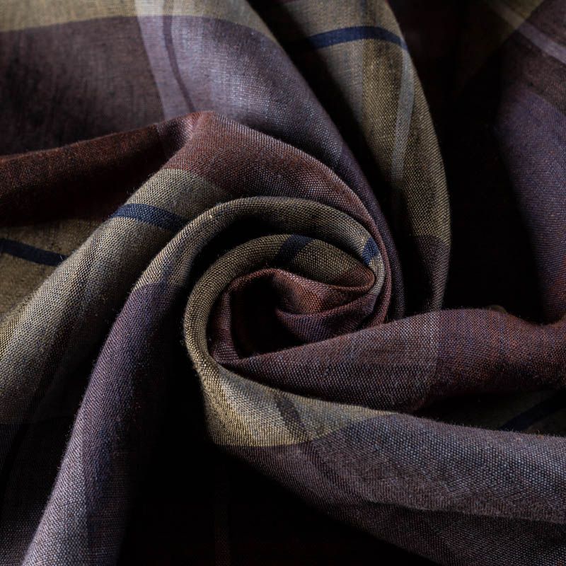 Прочный, выразительная матовая рельефная поверхность, полотняное переплетение, отлично держит форму, жестковатый на ощупь, но комфортный в изделии. Стильный вариант для летних костюмов, юбок, жакетов, брюк или шорт. Гармоничное сочетание оливкового, шоколадного, винного оттенков в крупной сложной клетке.