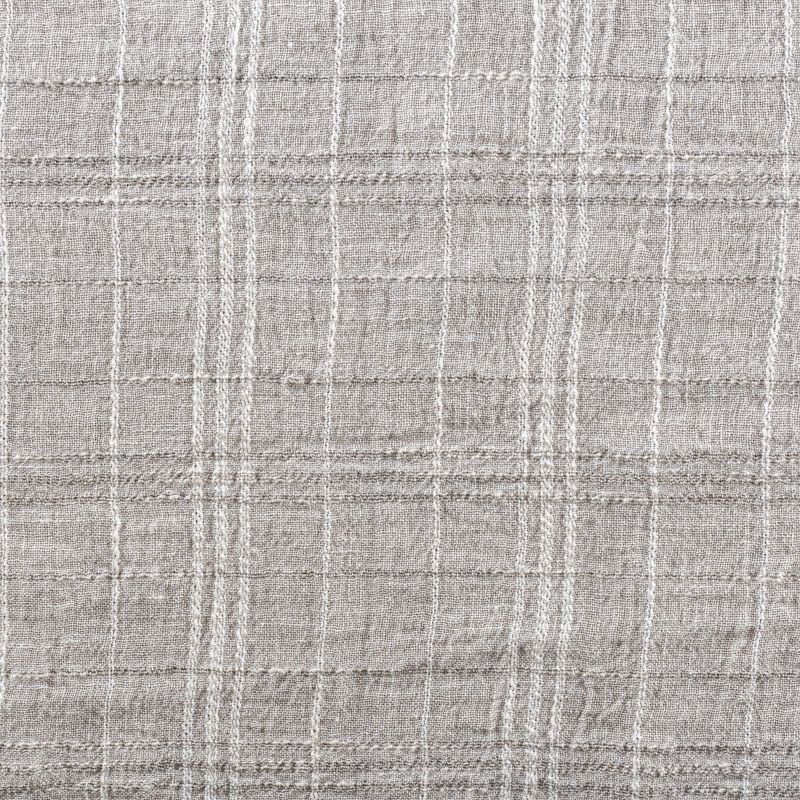 Итальянский лен с добавлением вискозы средней плотности со сложной "клетчатой" геометрией в светло-серых оттенках. Различная толщина нитей создает эффектную фактуру. Ткань пластичная, гибкая за счет плетения, матовая, мягкая, приятная на ощупь, не много рыхлая, комфортная в изделии. Отлично подойдет для пошива летних костюмов, рубашек, туник, платьев, сарафанов, юбок, жакетов, брюк или шорт, легкого пальто.