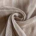 Итальянская ткань машинной вязки из льняной и хлопковой нити. Рисунок выполнен в виде горизонтальных полос песочного и молочного оттенков с добавлением люрексовой нити.  Прекрасно подойдет для пончо, жакета и кардигана, жилета или джемпера, топа, платья прямого кроя, а также для шарфа, палантина.