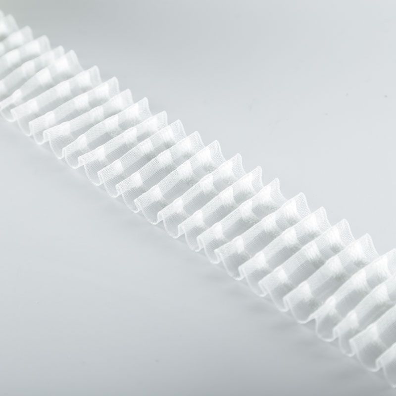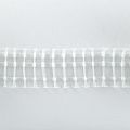 Шторная лента прозрачная для тюлей и портьерных тканей с карандашной сборкой. Сокращение - 1:1,5, раппорт - 4,5 см, 2 ряда непрозрачных белых кармашков, крепление - крючки.