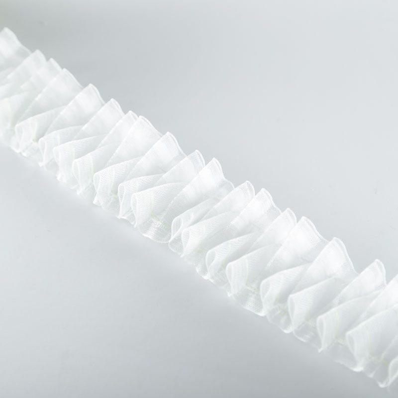 Шторная лента полностью прозрачная для тюлей и легких портьерных тканей c вафельной складкой. Сокращение - 1:2,5, раппорт - 6 см, 2 ряда кармашков, крепление - крючки.