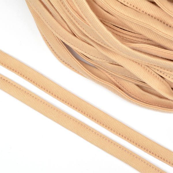 Лента тоннельная однострочная используется для продевания в нее каркаса и создания необходимой поддержки груди. Изготавливается из нескольких слоев материала с подогнутыми вовнутрь срезами, закрепленными сварным двухлинейным швом.