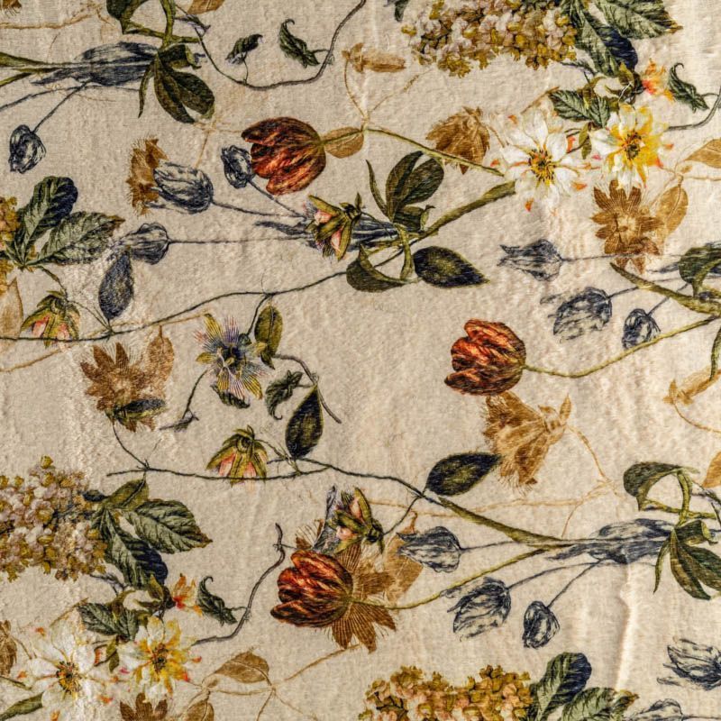 Искусственный мех, имитирующий кролика. На оливковом фоне оранжевые, молочные, желтые цветы. Красивое осеннее сочетание оттенков. Полотно мягкое, плюшевое, с коротким нежным ворсом. Имеет красивый лоск и приятную гладкую фактуру. Мех не мнется, не скатывается, долго сохраняет свой вид, очень уютный. Не тяжелый, отлично драпируется. Идеально подойдет для пошива шубки, мехового пальто, бомбера, куртки.