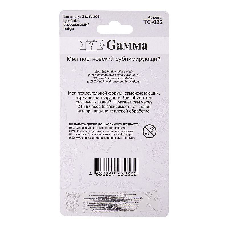 Мел портновский Gamma сублимирующий 2 шт TC-022 светло-бежевый в Вологде